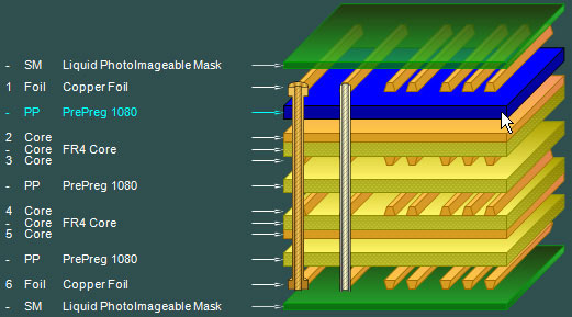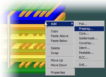 - After creating a stackup via the wizard, additional editing of the build can be done. For example, the addition of a prepreg layer