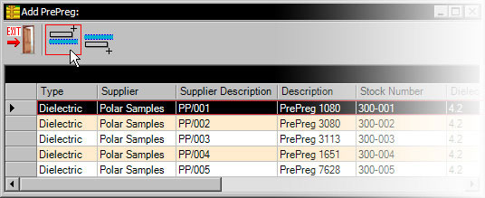 - 2. Using the Add Material icon on the toolbar (or right-click context menu), Select the Prepreg material type.
