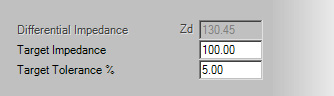 - With the current structure still selected, notice that the actual Impedance value is 130.45 from the values we have given, but our target Impedance is 100.